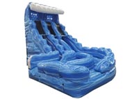 Our Tropical waterslides are our showstopper slides! If you are looking for "the big one" that is fun for all ages - this is it! This 22' tall Tropical Marble dual lane waterslide comes in at a whopping 65' in length! It has an inflated pool at the end; not a deep pool. (WET ONLY + comes with 2 blowers)20’ wide x 65’ long x 22’ tall