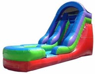 This is a 15' single lane slide that is geared more towards the younger kids. If you need a slide for children ages 5 and under then this is a good option for you! (DRY OR WET)9’ wide x 27’ long x 15’ tall