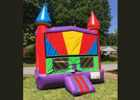 Great fun for the little royals in this 14' x 14' bounce house! Bright pink, purple, and blue make this a little girl's dream bouncy! (DRY ONLY)14' wide x 14' long x 16' tall